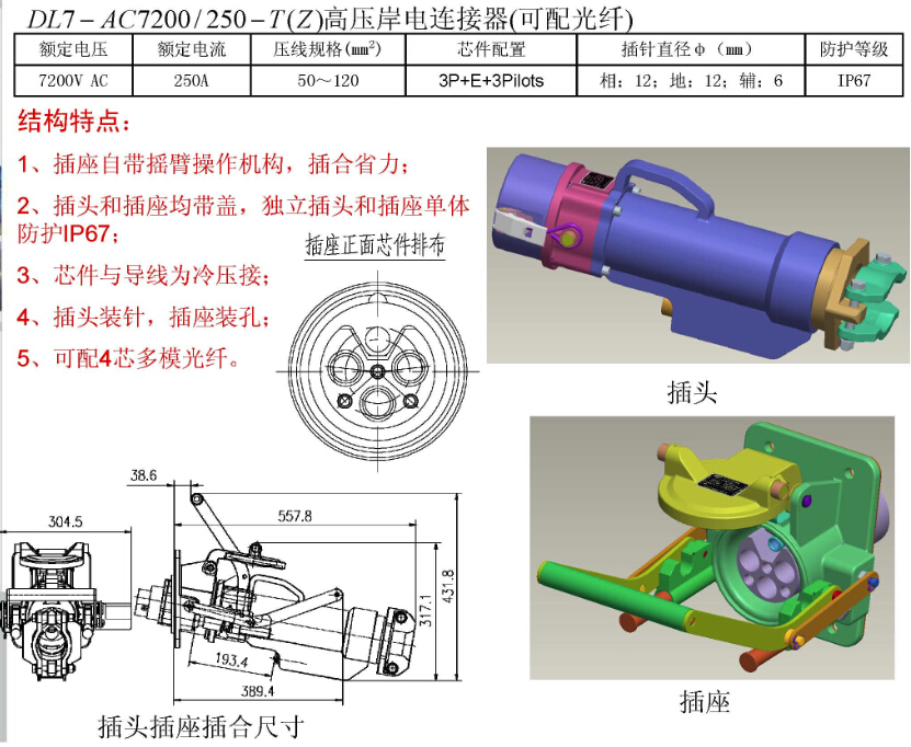DL7-AC7200/250-T(Z)高壓岸電連接器(可配光纖)