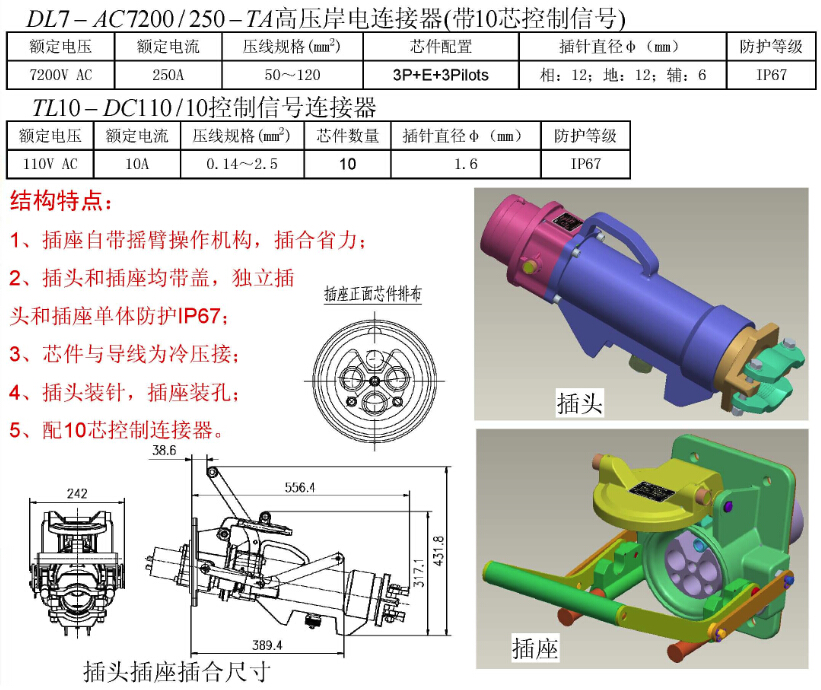 DL7-AC7200/250-TA高壓岸電連接器(帶10芯控制信號(hào))