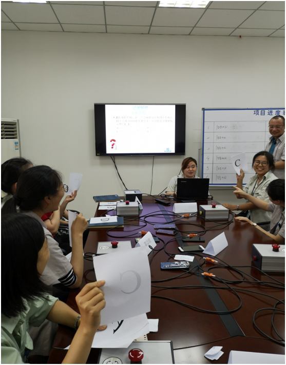 本次比賽分為“過關斬將(必答題)”、“速度與激情(搶答題)”、“一答定乾坤(風險題)”三個環節,每一環節題目均以應知應會知識為主。比賽籌備小組在賽前認真篩選題目,比賽題目來源于生活常識、安全消防環境知識、公司相關管理制度等,難易結合、循序漸進。比賽中的搶答器為員工利用現場物資自制,增加了比賽的趣味性。
