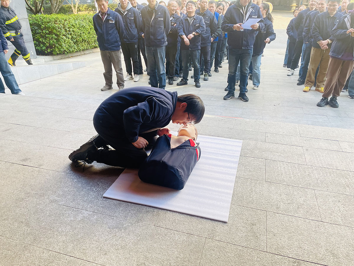 下午15時10分,火災警報驟然響起,演練正式啟動。本次演練模擬二樓包裝物倉庫因電路故障引發(fā)“火情”,現(xiàn)場濃煙彌漫。各部門負責人迅速響應,組織員工用濕毛巾捂住口鼻、彎腰低姿,沿疏散指示標識快速有序撤離至安全區(qū)域。整個過程僅用時2分40秒,全員安全抵達集結地點,無一人遺漏,高效完成疏散任務。應急搜救小組隨即展開行動,隊員攜帶專業(yè)裝備進入“火場”,通過呼喊定位等方式細致排查,成功營救并轉移出一名模擬“被困人員”,展現(xiàn)出良好的協(xié)同作戰(zhàn)能力。在救援區(qū),醫(yī)療小組針對“昏迷”“頭部外傷”等模擬傷情,現(xiàn)場演示了心肺復蘇判斷意識、開放氣道、胸外按壓、人工呼吸等全流程操作,以及三角巾頭部包扎技巧。講解清晰、操作規(guī)范,使員工掌握了實用的急救方法。演練結束后,總指揮馬總進行現(xiàn)場點評,充分肯定各環(huán)節(jié)銜接緊密、人員配合到位,有效檢驗了應急預案的可行性與隊伍的實戰(zhàn)水平。同時,他也指出疏散過程中個別動作不規(guī)范、搜救響應速度有待提升等問題,強調“消防安全無小事,必須將演練所學轉化為真正的應急處置能力”。